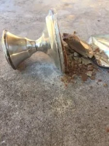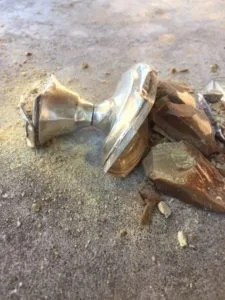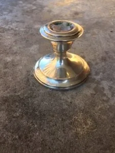 Take a look at the photos below. The first photo shows a candle stick holder which weighs about 7 ounces. After the base has been broken, all the weighted material (in this case, rosin) has fallen out. More will be removed from the actual cup where the candle is inserted. When this item is cleaned up, the weight is reduced to 1.8 ounces.